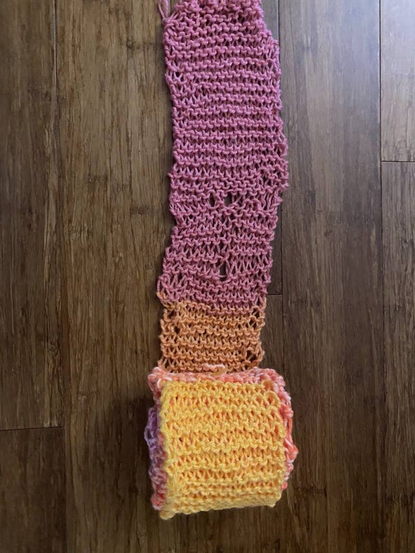 Channel a sunset with this beautiful scarf. Inspired by late night drives home from soccer tournaments, watching the sunset.